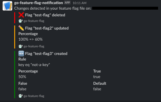The Slack notifier allows you to get notification on your favorite slack channel when an instance of go-feature-flag is detecting changes in the configuration file.
